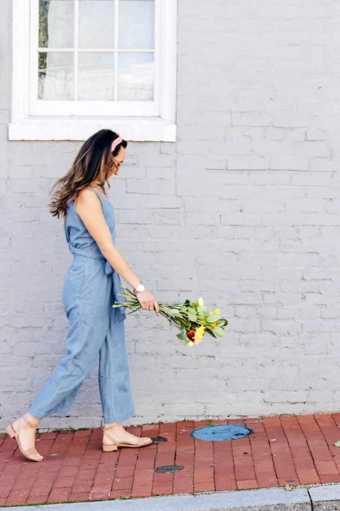 I'm wearing J.Crew's wrap-tie jumpsuit (size 0) which is the perfect item to own this spring. Not only does it have an adorable and flirty fit, it's light and airy to keep you cool on those warmer afternoons. I love the material of this jumpsuit and how comfortable and fabulous I feel in. This jumpsuit can be worn on countless occasions, so feel free to dress it up or keep it casual. Wear it with flats, a bandana and crossover bag, or jazz it up with a heel/wedge, statement piece and fun pop of lip color.
