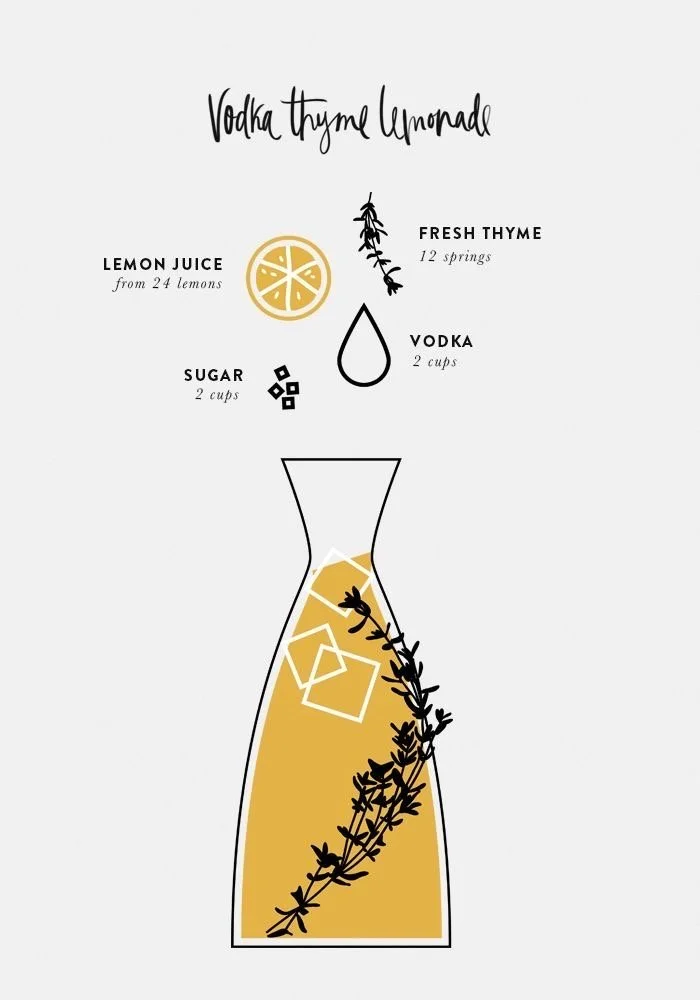 As we kickoff the start to this unusual summer, let's continue to be creative. We're all in the same boat, facing challenges and withdrawals with COVID-19 front and center, so instead of getting down, let's bring the party home. While our favorite bars and regular go-to's may be temporally closed, don't let that prevent you from enjoying the summer ahead. When life gives you lemons during a pandemic, squeeze, slice and toss them into a yummy, citrus Vodka Thyme Lemonade. (If you don't have the time or desire to make homemade lemonade, just buy an old fashioned pre-made lemonade and garnish it with some lemon slices and thyme. - I won't tell haha).